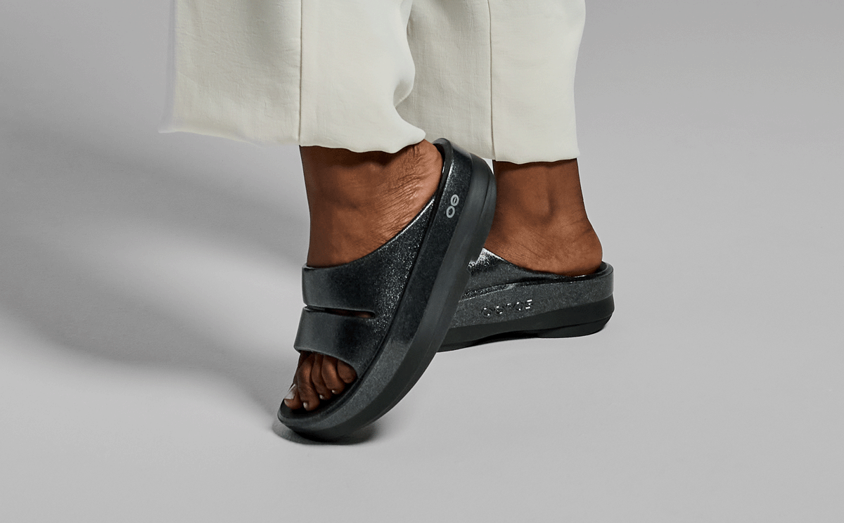 Women’s OOmega OOahh Stacked Sandal – Black Sparkle